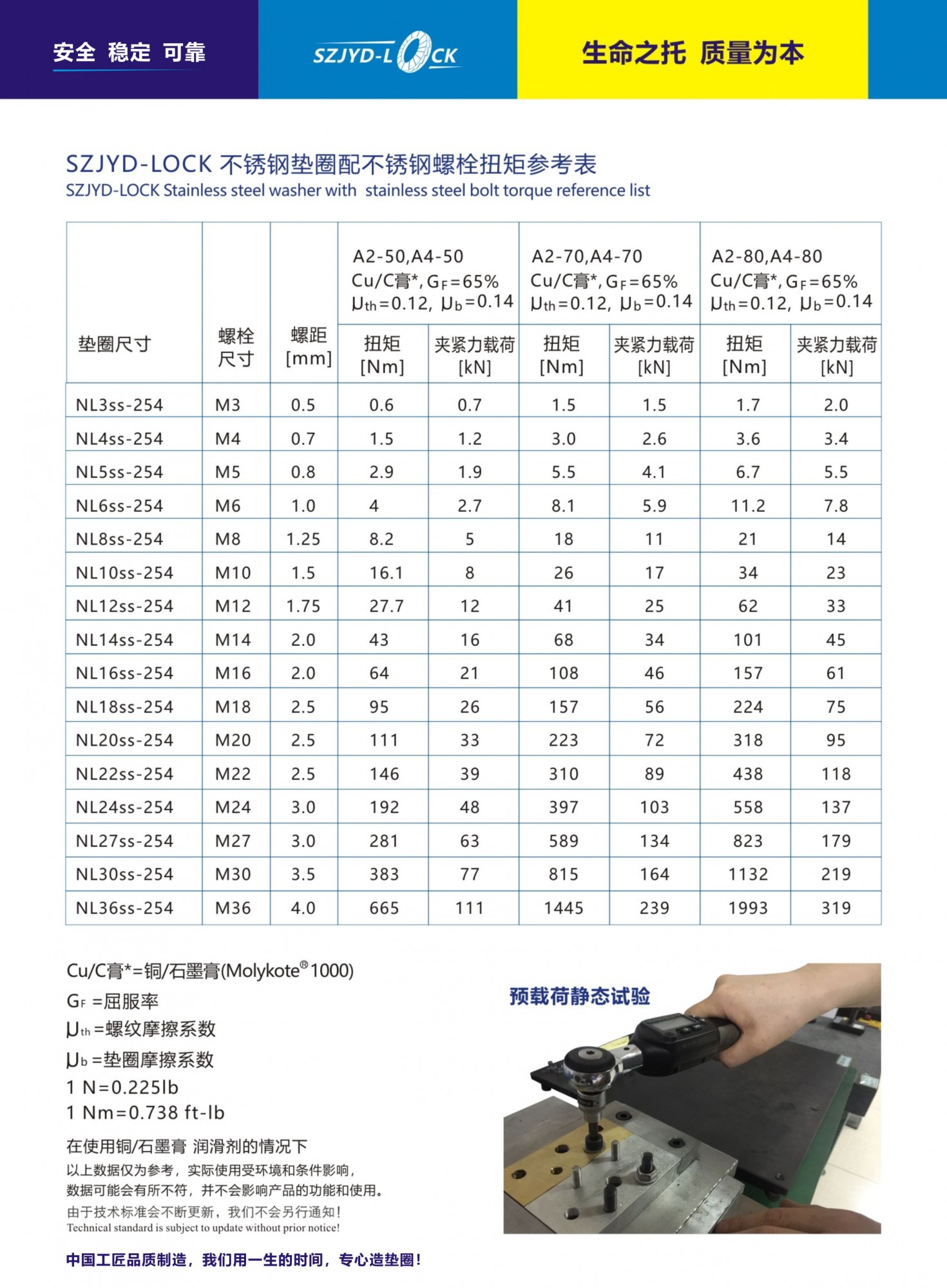 表面全部清洗拋光處理; 雙疊自鎖墊圈的使用:墊圈兩個大斜齒面成對粘合,目的是便於安裝和防止錯誤用!墊圈的硬度必須高于螺栓的硬度!SZJYD-LOCK墊圈全部經過DIN65151橫向振動測試可以達到200萬測試、其衰減率不低于70%!
