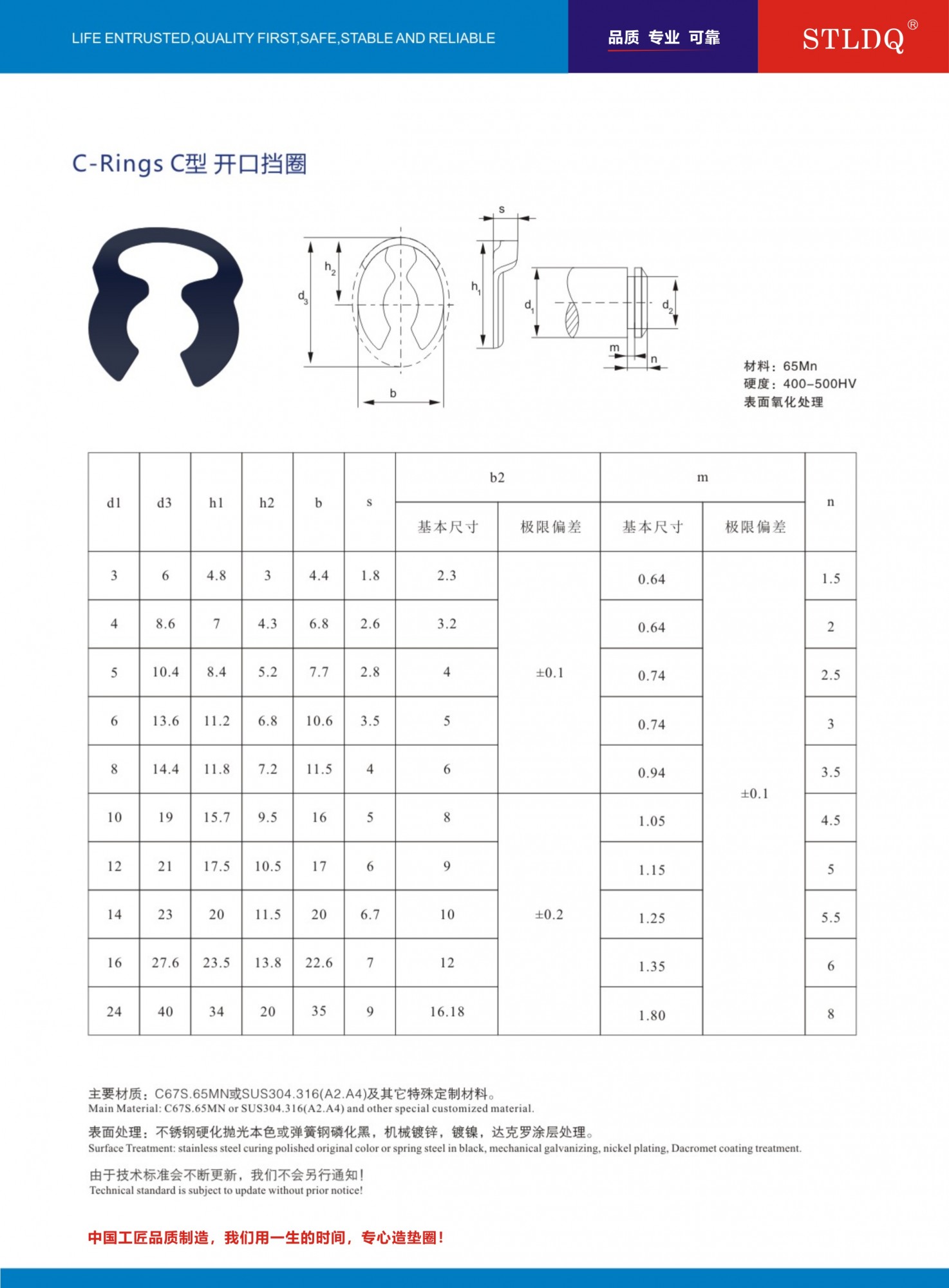 CR型開口擋圈,M3-M24規格 65mn材質 表面處理:磷化黑色